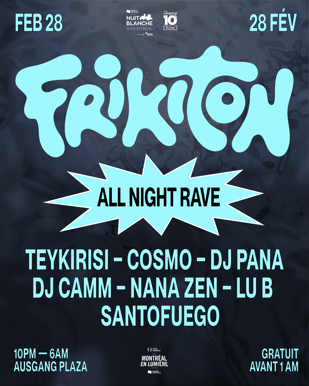 As part of Nuit Blanche, on February 28. A sonic journey from lo urbano to lo underground, from global hits to Latin electronic sounds: reggaeton, neo-perreo, dembow, tribal, latin house, all the way to guaracha, aleteo, tuki, raptor house and more